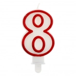 Ova bijela svijeća s izraženim crvenim obrubom idealan je ukras za rođendanske torte i druge svečane prigode. Naglašava broj godina i cijelom aranžmanu daje elegantan, čist izgled.