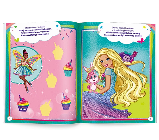 Ova kreativna knjiga idealan je izbor za male obožavateljice Barbie koje vole naljepnice, boje i bajkovite motive. Zahvaljujući mekom uvezu i formatu 20,5 × 29 cm, izvrsna je za putovanja, u automobilu i za slobodne trenutke kod kuće.