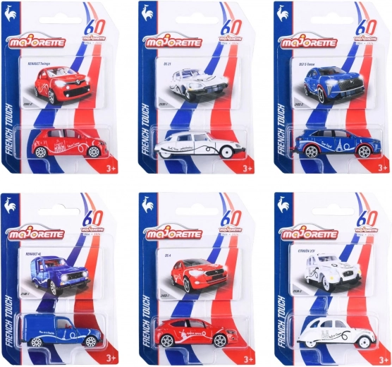 Serija Majorette French Touch Premium Cars donosi šest kultnih francuskih vozila u mjerilu 1:64: DS 7, RENAULT 4L, DS 21, CITROËN 2CV, DS 4 i RENAULT TWINGO. Svaki model izrađen je od kvalitetnog metala i plastike te se ponosi realističnim detaljima, zbog čega je odličan dodatak kolekciji i sjajna igračka za djecu od 3 godine.