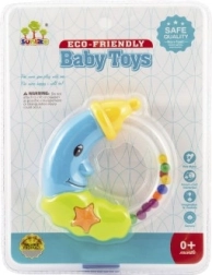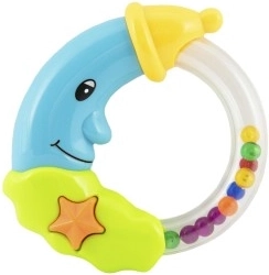 Šarmantna zvečkica u obliku mjeseca razveselit će svaku bebu već od rođenja. Zahvaljujući laganoj plastičnoj konstrukciji lako se drži i pri pokretu ispušta ugodne zvukove koji potiču percepciju i umiruju. Lagani plast, ugodan zvuk, dvije varijante boja, prikladno od 0 mjeseci.