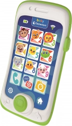 Interaktivni govornički dodirni pametni telefon tvrtke CLEMENTONI zabavna je i edukativna igračka za djecu od 12 do 36 mjeseci. Zahvaljujući 12 dodirnim tipkama djeca uče životinje, brojeve i zvukove, dok melodije i zvučni efekti potiču slušnu percepciju. Tri šarena LED svjetla i atraktivna grafika zadržavaju pozornost malih istraživača te podržavaju kognitivni razvoj, finu motoriku i oponašanje odraslih.