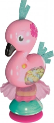 Interaktivni flamingo osmišljen je za poticanje multisenzornog razvoja najmlađih. Pri protresanju emitira vesele melodije i razne zvučne efekte koji stimuliraju sluh. Zvečeći trbuščić i šareni privjesci s različitim površinama potiču djecu na istraživanje i vježbanje fine motorike.