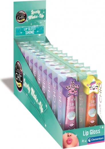 Priuštite malim modnim znalcima blistav osmijeh sa sjajilom za usne CRAZY CHIC od Clementonija. Praktična mekana tuba s kugličnim aplikatorom osigurava jednostavno i ravnomjerno nanošenje, a poklopac u obliku zvjezdice dodaje stil. Boje se biraju nasumično za zabavno iznenađenje. Pogodno za djecu od 6 godina.
