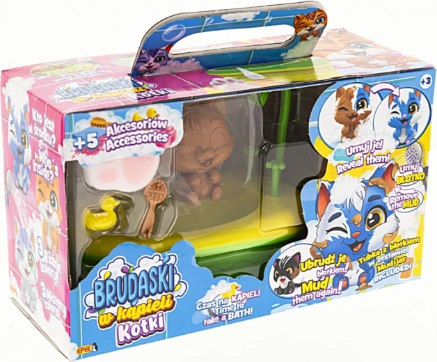 Otkrijte zabavnu interaktivnu igračku koja djecu uči brizi o kućnim ljubimcima i higijeni. Mačića Puszka možete višekratno “uprljati” posebnim blatićem i ponovno oprati u vlastitoj kadici s tušem. Igra potiče kreativnost i razvoj fine motorike, a zahvaljujući lako čistivoj površini nudi beskrajno ponavljanje igre.