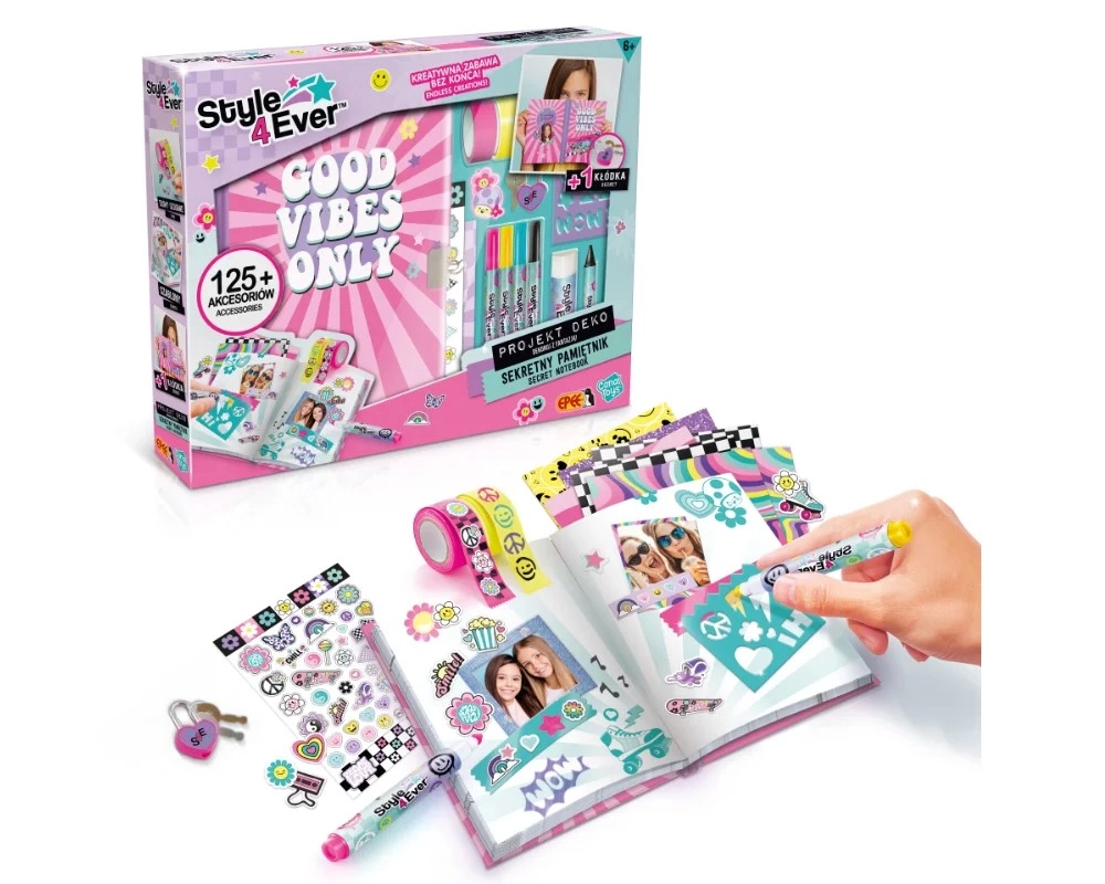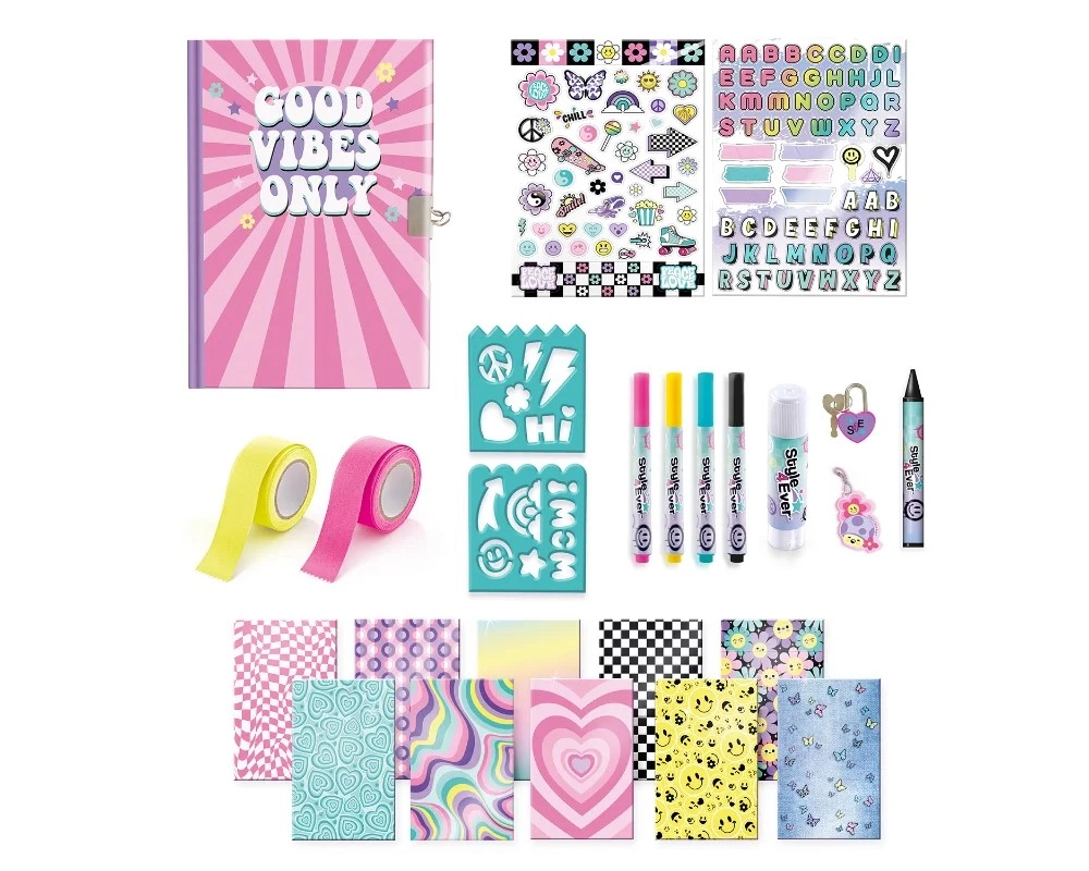 Uz ovaj zabavni set djeca će izraditi vlastiti osobni i siguran dnevnik zahvaljujući bravi koja štiti njihove misli i doživljaje. Bogata oprema potiče maštu i omogućuje jedinstvenu personalizaciju – od šarenih uzoraka do originalnih naljepnica.