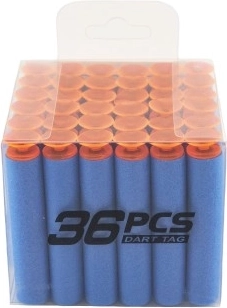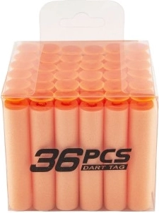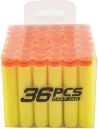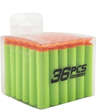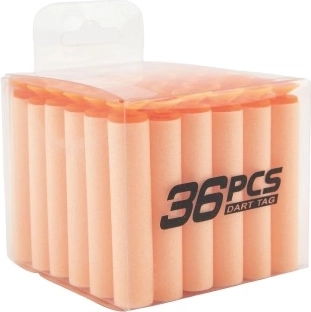 Strelice odgovaraju većini standardnih pjenastih blastera i idealne su kao brza zamjena za izgubljene ili istrošene komade. Kompaktno pakiranje dimenzija 8 × 7 × 8 cm stane u ruksak ili džep i drži strelice na okupu.