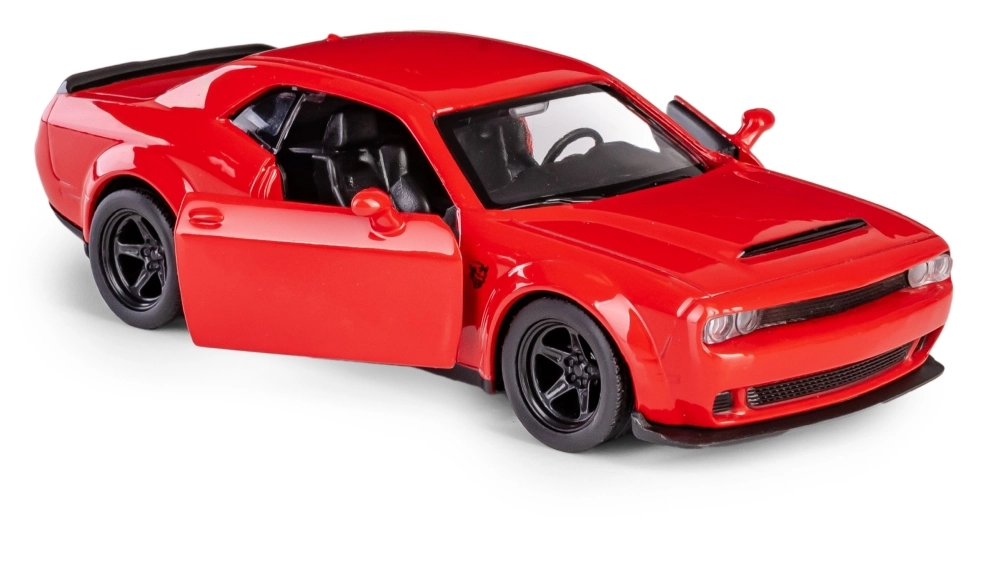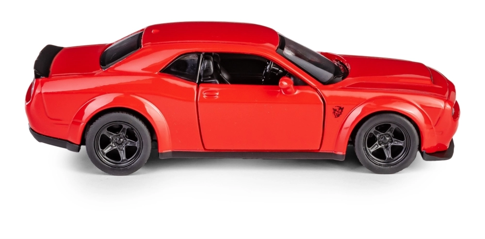 Uživajte u realistčnoj vožnji s detaljnim modelom auta Dodge Challenger SRT Demon u mjerilu 1:32. Kombinacija metalnih i plastičnih dijelova osigurava izdržljivost, otvarajuća vrata otkrivaju pažljivo izrađenu unutrašnjost, a pull-back mehanizam donosi zabavu pri vožnji naprijed. Gumene gume poboljšavaju prianjanje, a službena licenca jamči vjernu reprodukciju detalja ovog legendarnog muscle cara.