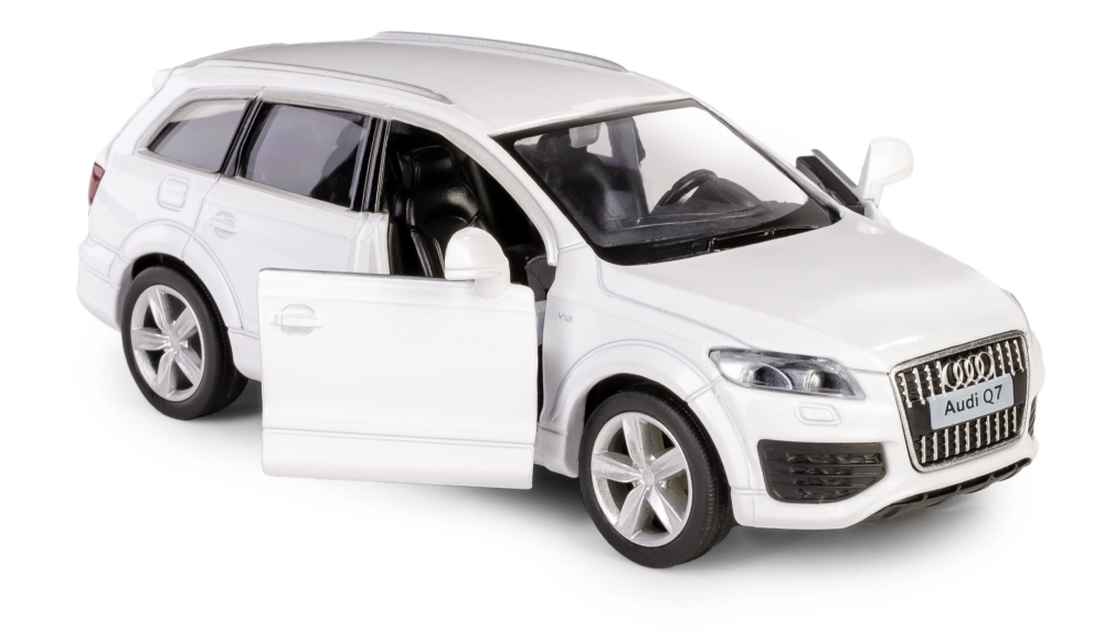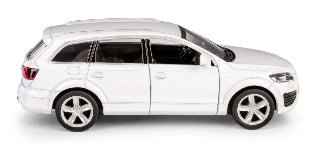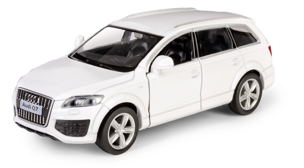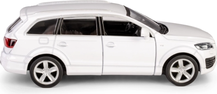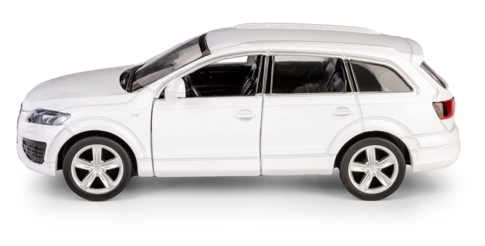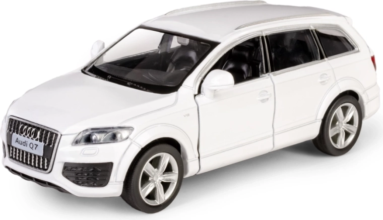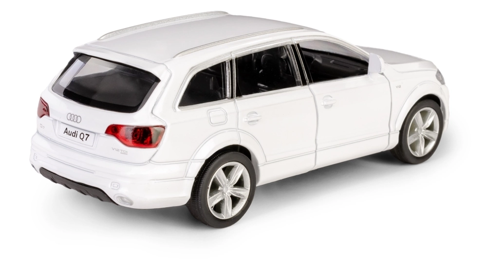 Detaljno izrađen metalni model SUV-a AUDI Q7 V12 u mjerilu 1:40 razveselit će djecu i kolekcionare. Nudi otvarajuća vrata, povratni mehanizam na navijanje (pull-back) za vožnju naprijed i pažljivo izvedenu unutrašnjost. Model je izrađen od kvalitetnih materijala, ima službenu licencu i ispunjava europske sigurnosne norme za djecu od 3 godine.