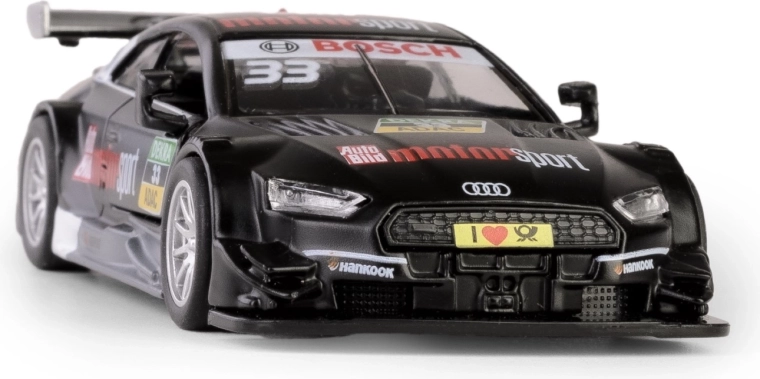 Precizno izrađen model vozila AUDI RS 5 DTM u mjerilu 1:43 oduševit će kolekcionare i djecu. Metalna karoserija s plastičnim detaljima vjerno dočarava sportski dizajn, a zahvaljujući otvarajućim vratima i povratnom mehanizmu na navlačenje (pull-back) nudi odličnu interaktivnost. Licencirani proizvod ispunjava europske sigurnosne norme i prikladan je za djecu od 3 godine.