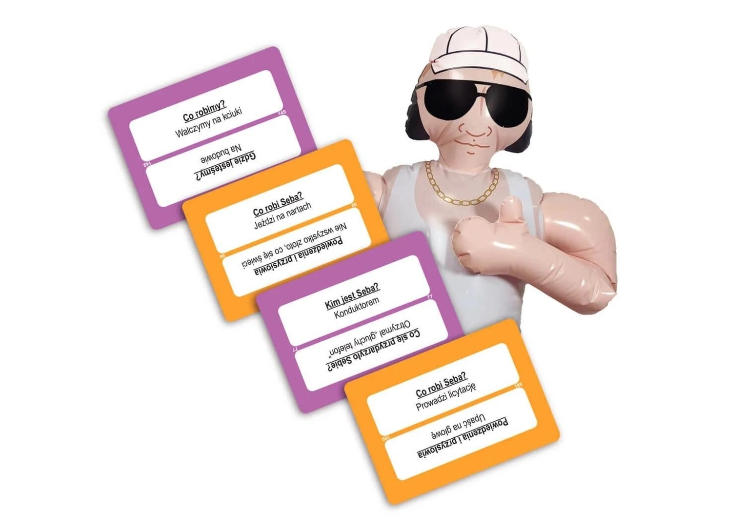 Otkrijte energičnu party igru brenda Trefl, koja nadovezuje se na uspjeh „Kim jest Janusz?“. U „Gdzie jest Seba?“ susrećete Sebu u prirodnoj veličini i morate predstavljati pojmove bez korištenja riječi i zvukova. Igra potiče kreativnost, improvizaciju i zdrav natjecateljski duh, idealna je za večeri s prijateljima i obiteljska okupljanja te nudi brze partije od 20–30 minuta za 3–8 igrača od 14 godina.