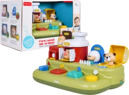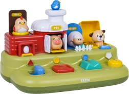 Šarena interaktivna farma s četiri iskačuće životinjice razveselit će djecu od 12 mjeseci. Djeca otkrivaju princip uzrok–posljedica, vježbaju finu motoriku i uče zvukove životinja. Velike tipke, klizači i okretni elementi izrađeni su od sigurnih materijala. Igračka nudi melodije, zvučne efekte i podešavanje glasnoće. Napajanje 3× AA (nisu uključene).