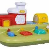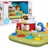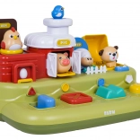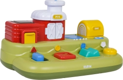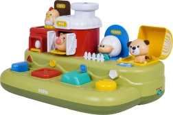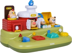 Ova vesela farma donosi djeci puno otkrivanja: nakon pomicanja plavog klizača iskoči pilić, nakon pritiska na crvenu tipku otvore se vratanca s prasencem, pritiskom na zelenu pojavi se ovčica, a okretanjem žutog regulatora proviri psić. Iznad upravljačkih elemenata nalaze se dodatne tipke koje pokreću melodije, zvukove životinjica i druge efekte.