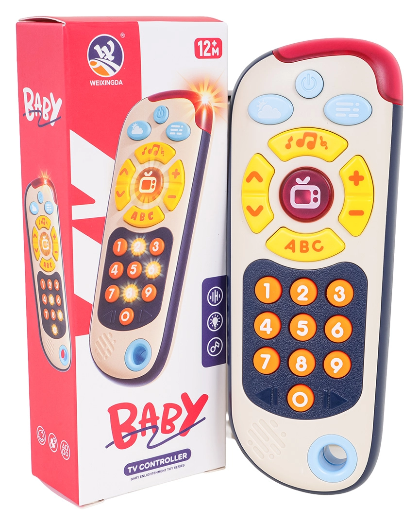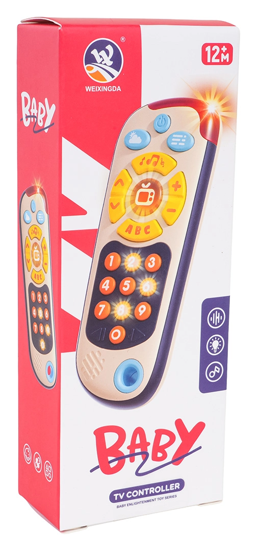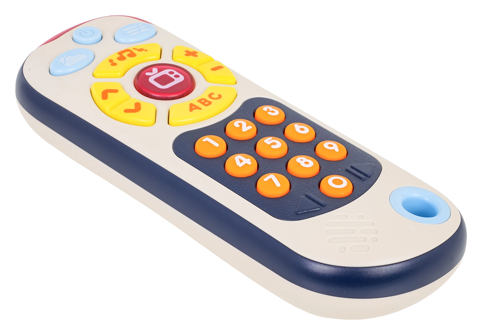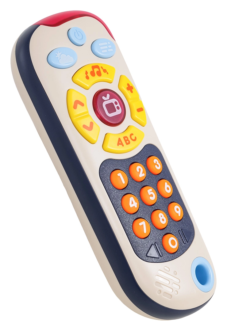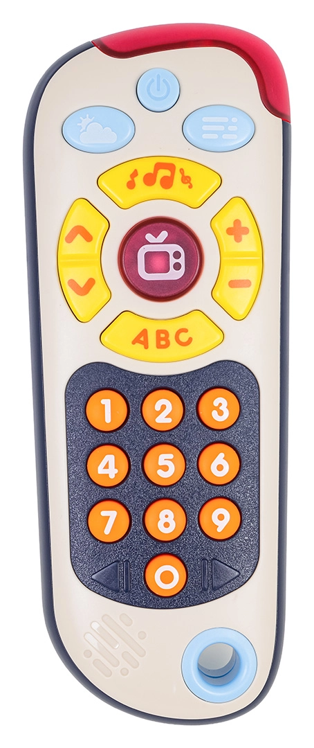 Ovaj šareni dječji upravljač oponaša pravi daljinski i potiče djecu na istraživanje. Nudi tri načina: brojevi, “televizijski” sadržaj i mini igru “whack-a-mole” s osvijetljenim tipkama. Velike, mekane tipke i ugodni svjetlosni indikatori podržavaju koordinaciju oko–ruka i razvoj rječnika.