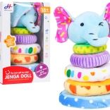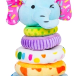 Ova meka plišana piramida u obliku slona odlična je prva edukativna igračka. Djeca vježbaju nanižanje 4 prstena različitih veličina na meku osovinu i uče razvrstavanje po veličini i bojama. Piskalo u slonovoj glavi nagrađuje svaki pritisak veselim zvukom i razvija slušnu percepciju.
