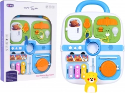 Kofer je izrađen od sigurnih, izdržljivih materijala u živim bojama, a zahvaljujući integriranoj ručki djeca ga lako nose. Dio seta je i mini ksilofon (cimbalčići) s palicom, koji razvija ritam i slušnu percepciju. Odlično rješenje za igru kod kuće i na putu.
