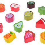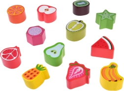 Set sadrži raznobojne voćne dijelove za umetanje u odgovarajuće otvore. Djeca uče boje, oblike i nazive voća te vježbaju logiku.