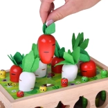 Djeca „sade” i izvlače drvene mrkvice i rotkvice s mekanim filcanim listovima – sjajan trening hvata, snage prstiju i koordinacije oko–ruka.