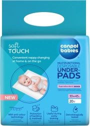 Praktične jednokratne podloge Canpol babies pružaju čistu i higijensku podlogu za prematanje kod kuće i na putu. Imaju superapsorbirajuću jezgru, vodootpornu donju slojnicu protiv propuštanja i meku, nježnu površinu za bebinu kožu. Zahvaljujući tehnologiji koja neutralizira neugodne mirise, okolina ostaje svježa. Idealan izbor za kolica, krevetić, posjete liječniku i za učenje na kahlicu. Pakiranje 20 kom, dimenzije 33 × 45 cm.