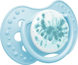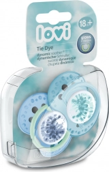 Dinamična duda LOVI Tie Dye 18m+ oponaša prirodno sisanje na prsima. Homogeni silikonski sloj se pri sisanju skuplja i širi, sisa je simetrična i spljoštena za ispravan rad jezika i prirodno zatvaranje usta. Lagani, ergonomski štitnik s ventilacijskim otvorima pomaže spriječiti iritaciju kože, a oblik ispod nosa olakšava slobodno disanje.