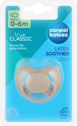 Duda Canpol babies NUDE izrađena je od prirodne gume s karakterističnim blago žućkastim, mat izgledom. Okrugli vrh potiče prirodni sisni refleks i pruža bebi umirenje u bilo koje doba dana. Ergonomični štitnik s ventilacijskim otvorima osigurava cirkulaciju zraka te pomaže spriječiti nadraženost kože oko usta.