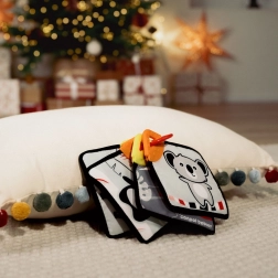 Otkrijte idealnu prvu igračku za bebe 0m+. Set od 4 obostrane platnene kartice (12 × 12 cm) u visokom kontrastu pomaže djetetu fokusirati pogled i razvija koordinaciju oko–ruka. Svaka kartica je mekana, šuškava i ugodna na dodir, pa će zainteresirati i one najmanje.