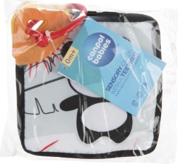 Mekane senzorne kartice s grickalom CANPOL babies BabiesBoo potiču razvoj osjetila već od rođenja. Zahvaljujući kontrastnim crno-bijelim uzorcima i šuškavim elementima stimuliraju vid i sluh, teksturirano grickalo ublažava nelagodu pri nicanju zubića, a praktični prsten omogućuje pričvršćivanje na kolica ili autosjedalicu.