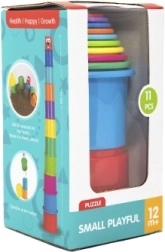Set šarenih složivih čaša sadrži 11 dijelova koji se mogu koristiti za izradu visoke kule. Čaše se sastoje od različitih boja i mogu se umetati jedna u drugu, što je sjajan način za razvoj finih motoričkih sposobnosti vašeg djeteta.