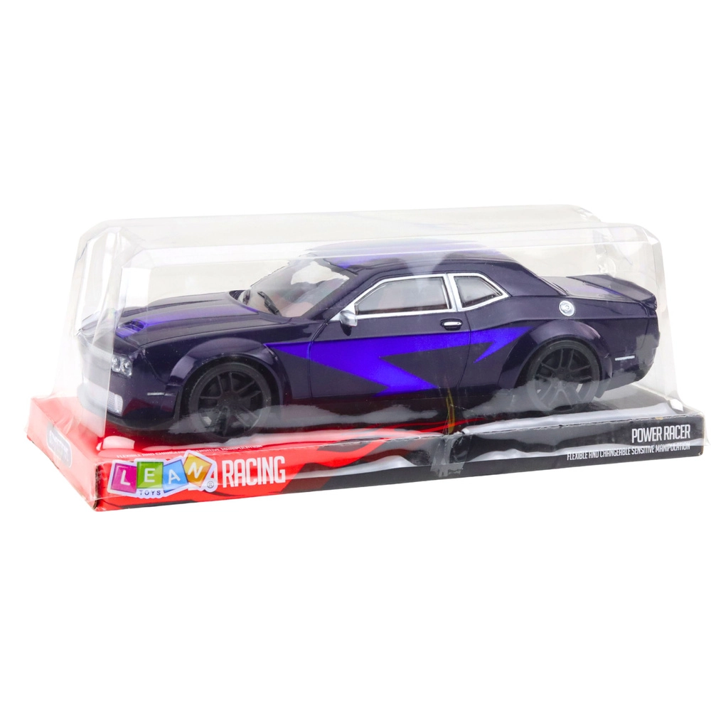 Tamnoljubičasti sportski automobil izrađen je od kvalitetne plastike i zahvaljujući pogonu na trenje nakon guranja sam kreće. Realistična izvedba i atraktivna grafika mame na utrke i napete priče na kućnoj stazi.