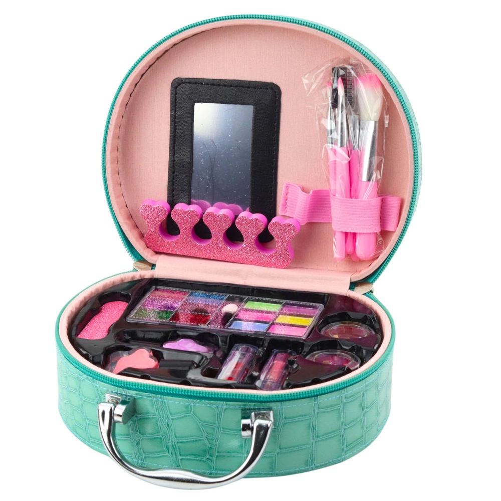 Ovaj prekrasan set s dječjom kozmetikom potiče maštu i finu motoriku. Sve je pregledno složeno u zatvorivoj okrugloj torbici s ručkom, pa se lako prenosi i održava urednim. Odlično za kućnu zabavu, rođendanske proslave i druženja s prijateljicama.