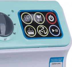 Djeca će zavoljeti panel s tipkama, okretni birač temperature i funkcije start/stop. Upravljanje je intuitivno i podsjeća na pravu perilicu.