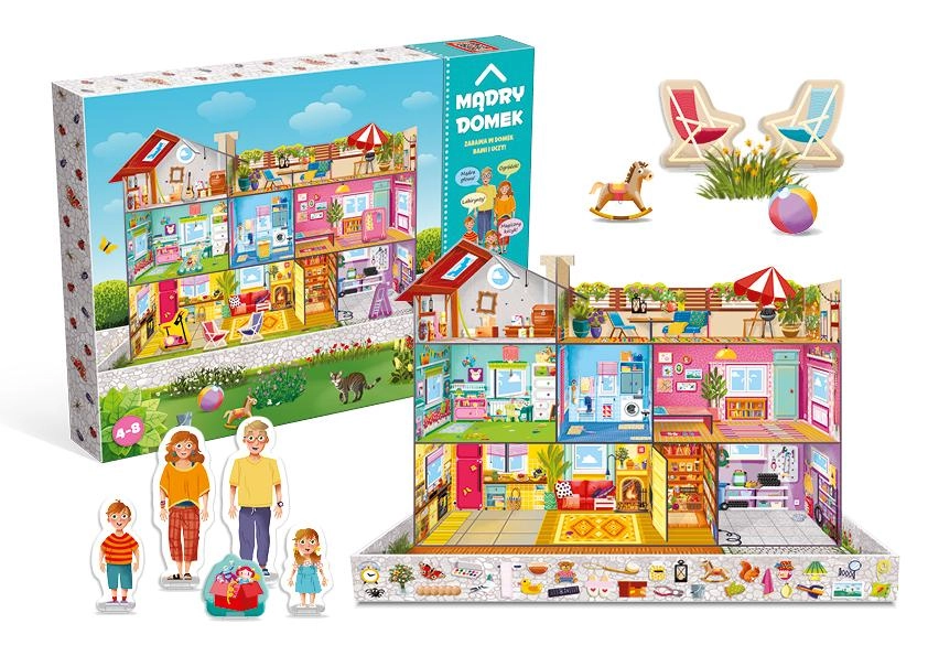 Edukativna igra Granna Domek 3D povezuje kreativno slaganje s raznolikim zadacima. Djeca slažu trodimenzionalnu kućicu, smještaju u nju 27 komada namještaja i tijekom igre razvijaju rječnik, logiku i finu motoriku. Aktivnosti su osmišljene da budu zabavne, razumljive i motivirajuće za djecu od 4 do 8 godina.