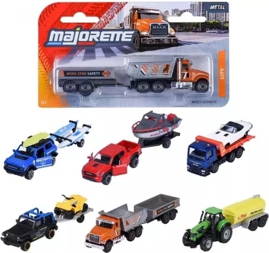 Otkrijte šaroliku kolekciju Majorette gradskih vozila s prikolicama u mjerilu 1:64, inspiriranu stvarnim modelima marki MERCEDES-BENZ, JEEP, DEUTZ i MAN. Metalni modeli s pokretnim dijelovima i odvojivim prikolicama nude realistične detalje, visoku izdržljivost i beskrajnu zabavu za djecu od 3 godine naviše.