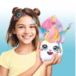 U paketu je i bogat set dodataka za kosu, zahvaljujući kojima djeca mogu stvarati raznolike frizure – od pletenica do ukrasnih ukosnica. Ova interaktivna igračka potiče maštu, koncentraciju i spretnost te je odličan poklon za male stvaratelje.