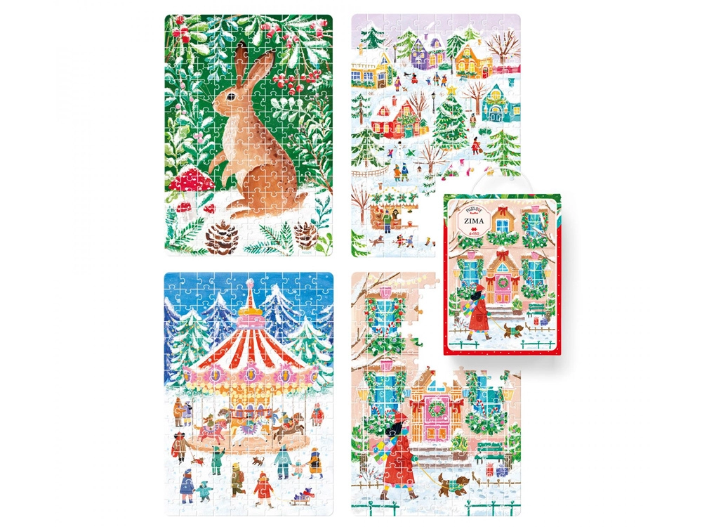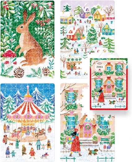 Otkrijte čaroliju zime s kolekcijom CzuCzu Puzzlove Zima. Četiri stilske ilustracije nude ugodan izazov za početnike i napredne te su odlične za opuštene večeri. Sastavljanje slagalica pomaže opustiti um, trenira strpljenje i donosi radost dovršene slike.