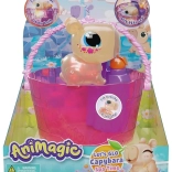 Otkrijte čaroliju kupanja s kapibarom AniMagic Spa Time. Zahvaljujući mekom i elastičnom materijalu izvrsna je za osjetilnu igru – djeca je mogu stiskati, mijesiti i rastezati, čime vježbaju koordinaciju ruku i prstiju. Nakon uranjanja u vodu, njezin trbuščić zasvijetli, a kapibara pluta na površini, što stvara umirujuću i zabavnu atmosferu.