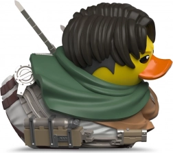 Ova stilizirana kolekcionarska patkica TUBBZ donosi fanovima Attack on Titan omiljenog kapetana Levija u simpatičnom „duck” izdanju. Vjerni detalji poput zelenog ogrtača, amblema na jakni i dvostrukih oštrica naglašavaju autentičnost službene licence i razveselit će svakog fana i kolekcionara limitiranih izdanja.