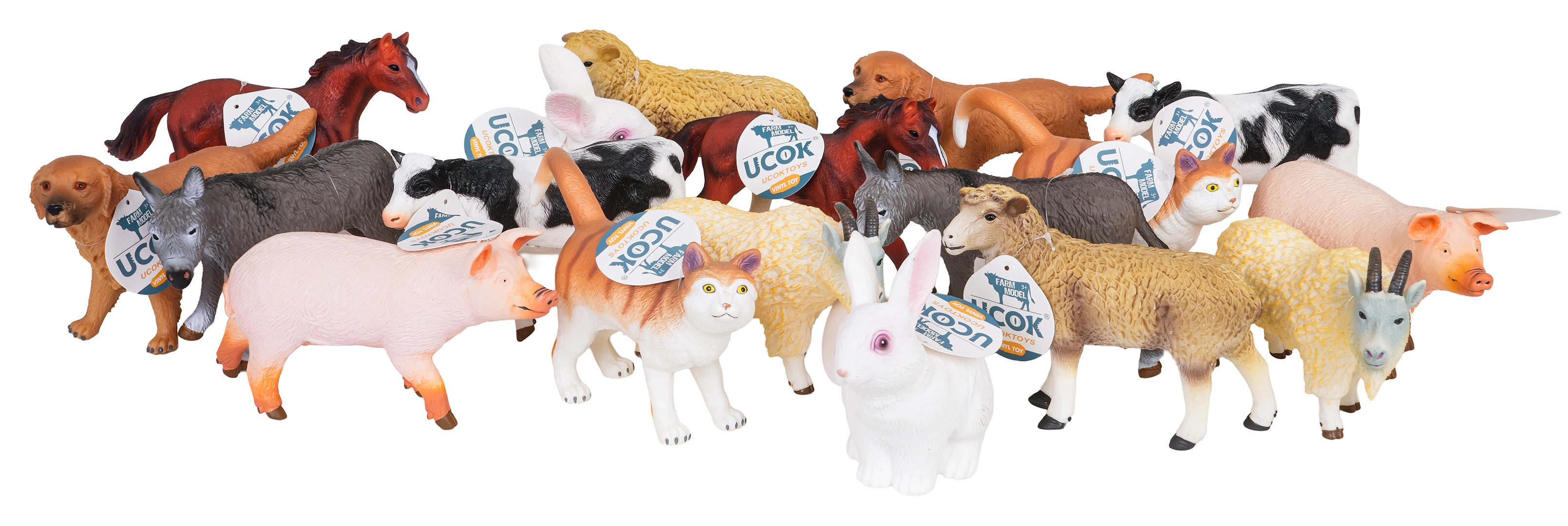 U pakiranju ćete pronaći raznolik izbor domaćih životinja, uključujući konja, kravu, svinju, kozu, ovcu, magarca, psa, mačku i zeca – uvijek po dva komada, kako bi se djeca lako mogla igrati u parovima ili stvarati malo “stado”. Praktični tubus/kutija omogućuje red i jednostavno prenošenje, pa je set prikladan za dom, vrtić i putovanja.