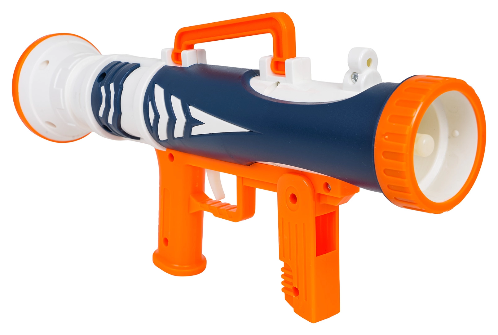 Igračka je izrađena od kvalitetnih, dječji-sigurnih materijala i ne zahtijeva baterije, pa je uvijek spremna za igru. U pakiranju se nalaze izbacivač i tri velika pjenasta projektila za trenutnu zabavu.