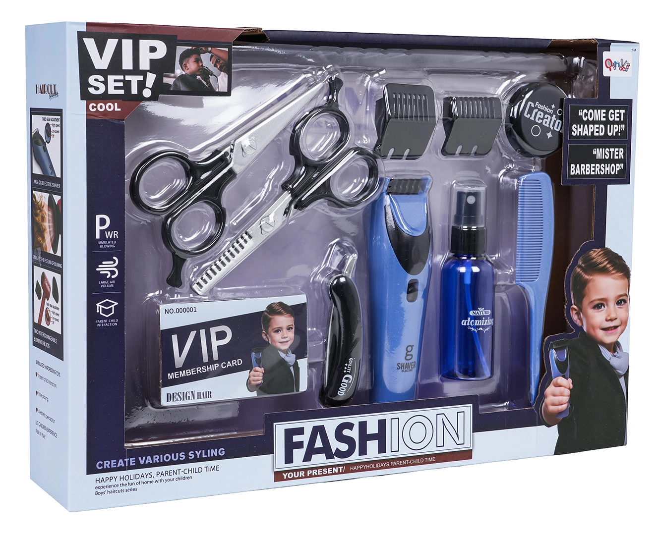 Glavna zvijezda je mašinica sa zvučnim efektima i pokretnim oštricama za realističan doživljaj igre. Zahvaljujući 11 dijelova pribora djeca mogu u potpunosti “uslužiti” mušteriju – od šišanja preko stiliziranja do njege brade.