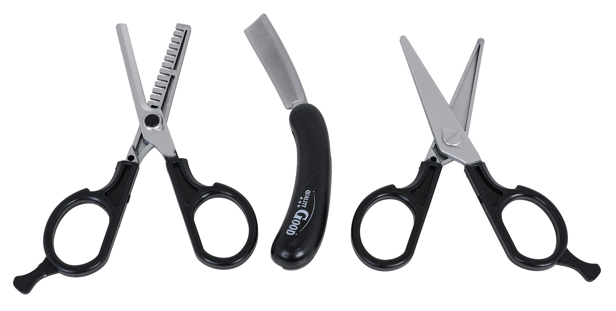 - mašinica, 2 × zamjenjivi nastavak, britva, 2 × škare, 2 × bočica za kozmetiku, češalj, 2 × VIP kartica