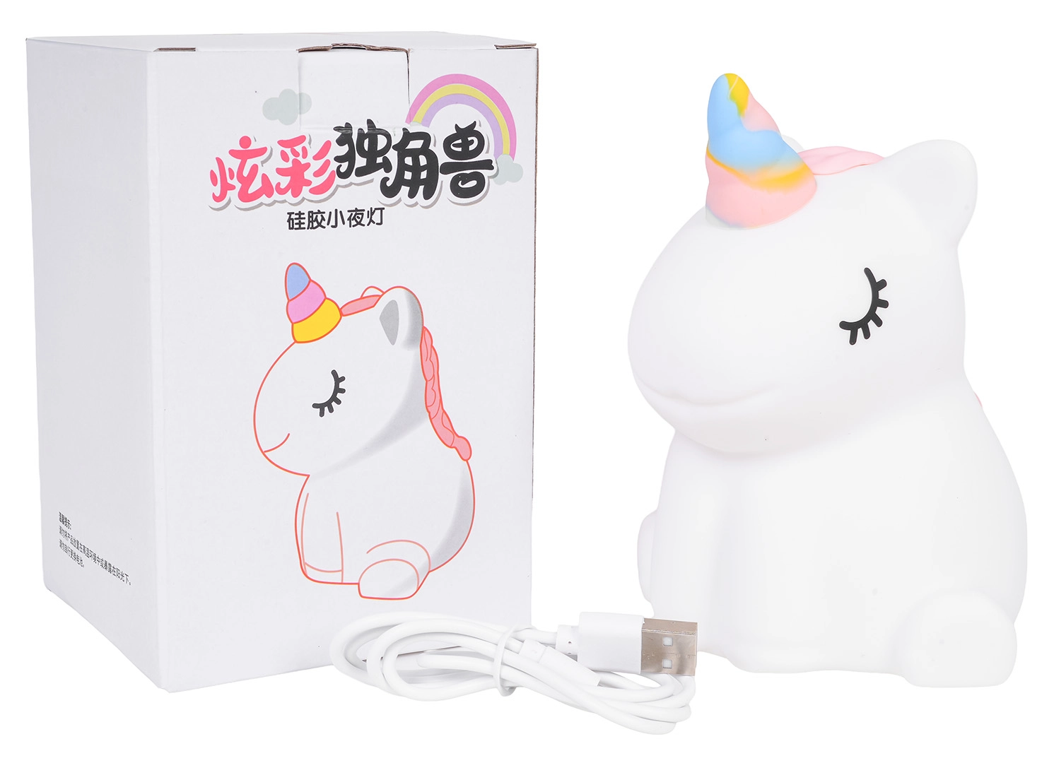 Preslatka noćna lampica u obliku jednoroga od mekog silikona bez BPA pruža toplo i nježno svjetlo te stvara ugodnu i sigurnu atmosferu u dječjoj sobi. Nudi 3 razine osvjetljenja (10 %, 50 %, 100 %), upravljanje dodirom po cijeloj površini i punjenje putem USB‑C s ugrađenom baterijom 3,7 V.