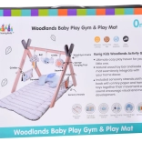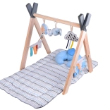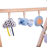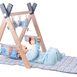Drvena igraća gimnastika s edukativnom podlogom i visećim igračkama za bebe