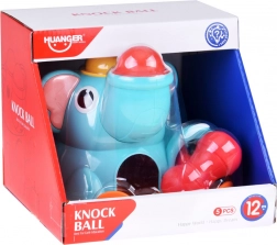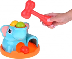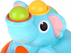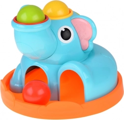 Slatki slonić na stabilnoj bazi privlači djecu svojim živim bojama i zaobljenim oblicima. U kompletu su crveni batić i tri šarene kuglice (crvena, žuta, zelena) koje se umeću i zabijaju u otvore – kuglice zatim prolaze kroz igračku i izlaze van, što motivira na nove pokušaje i potiče učenje uzročno–posljedičnih veza.