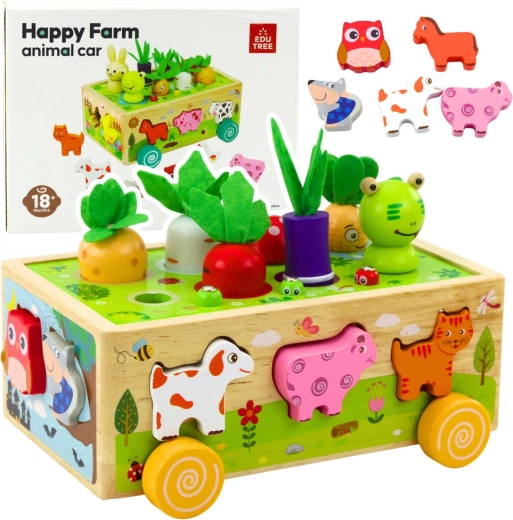 Otkrijte učenje kroz igru s drvenom igračkom Farma na kotačićima koja spaja sortir za oblike, zvonce, magnetne crviće i figurice životinja. Potpomaže finu motoriku, logičko razmišljanje, slušnu percepciju i koordinaciju pokreta – sve u duhu Montessori učenja i radosne igre.