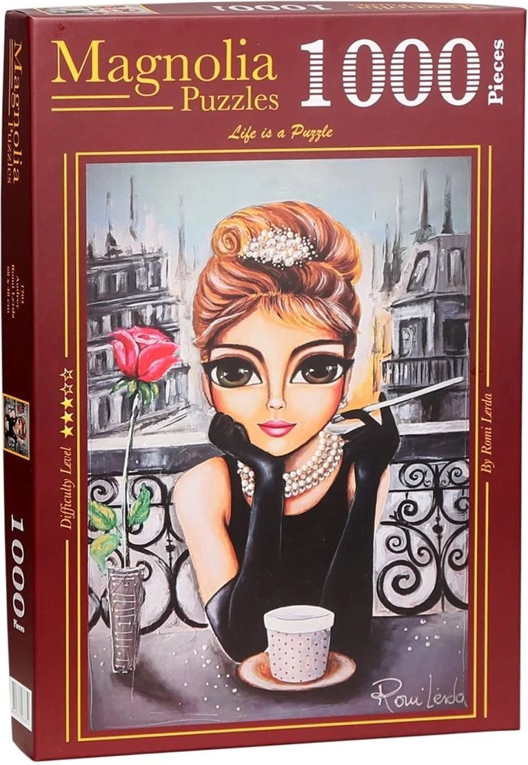 Uživajte u mirnom vremenu uz kvalitetnu slagalicu s motivom Audrey. Ova slagalica od 1000 dijelova donosi ugodan izazov za sve ljubitelje puzzli te ujedno stilski motiv koji nakon dovršetka možete uokviriti i izložiti.