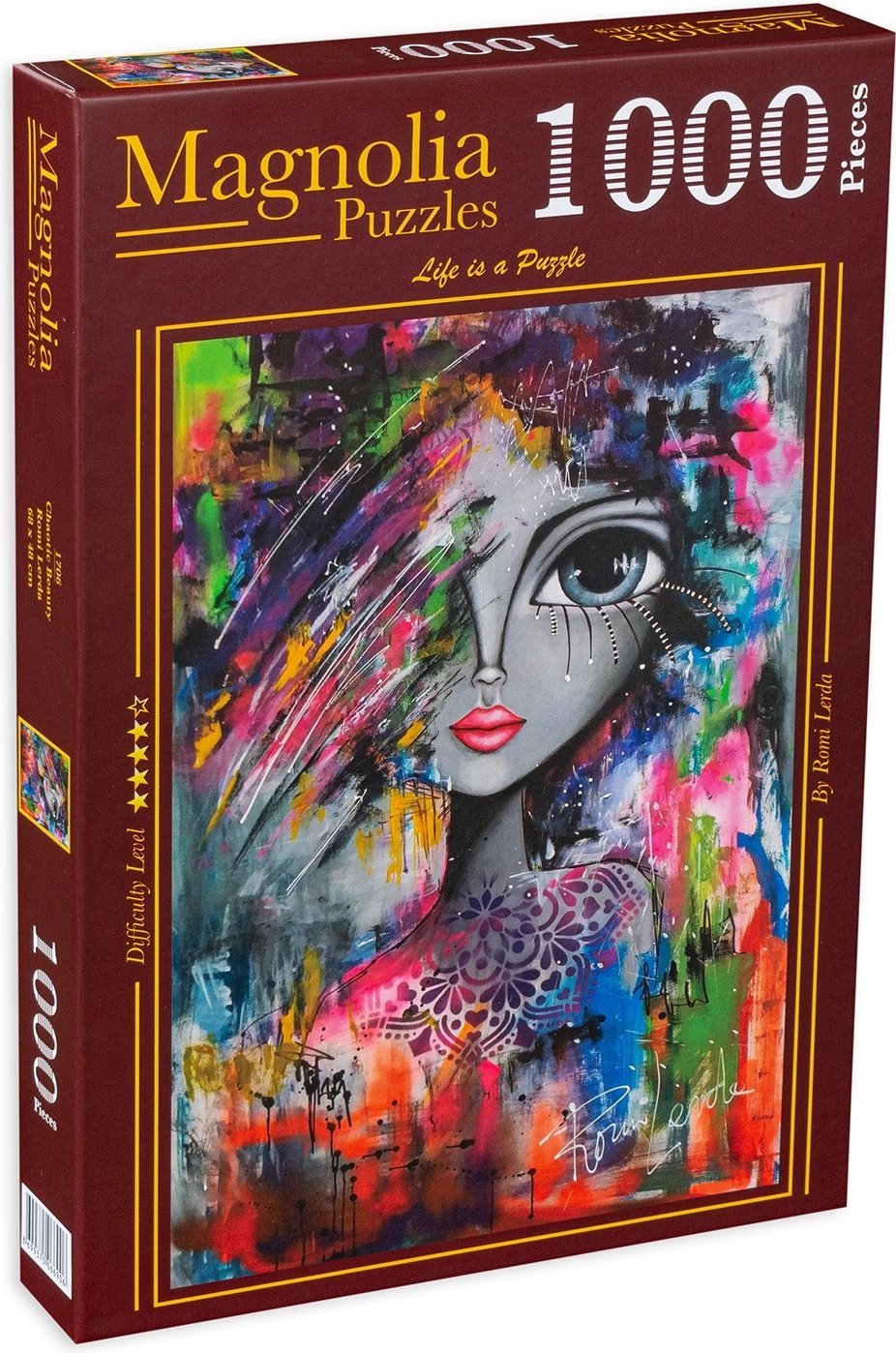 Otkrijte radost slaganja uz slagalicu MAGNOLIA Kaotična ljepotica. Precizno izrezani dijelovi savršeno pristaju i stvaraju dojmljivu sliku veličine 48 × 68 cm. Zahvaljujući 1000 dijelova, slagalica nudi uravnotežen izazov za početnike i iskusne slagatelje.