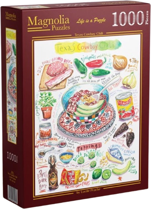 Otkrijte originalan motiv s teksaškom atmosferom i začinjenom tematikom koji će obradovati svakog ljubitelja puzzli. 1000 dijelova predstavlja sjajan izazov za srednje napredne i iskusne slagatelje, a po završetku nastaje dekorativna slika dimenzija cca 48 × 68 cm.