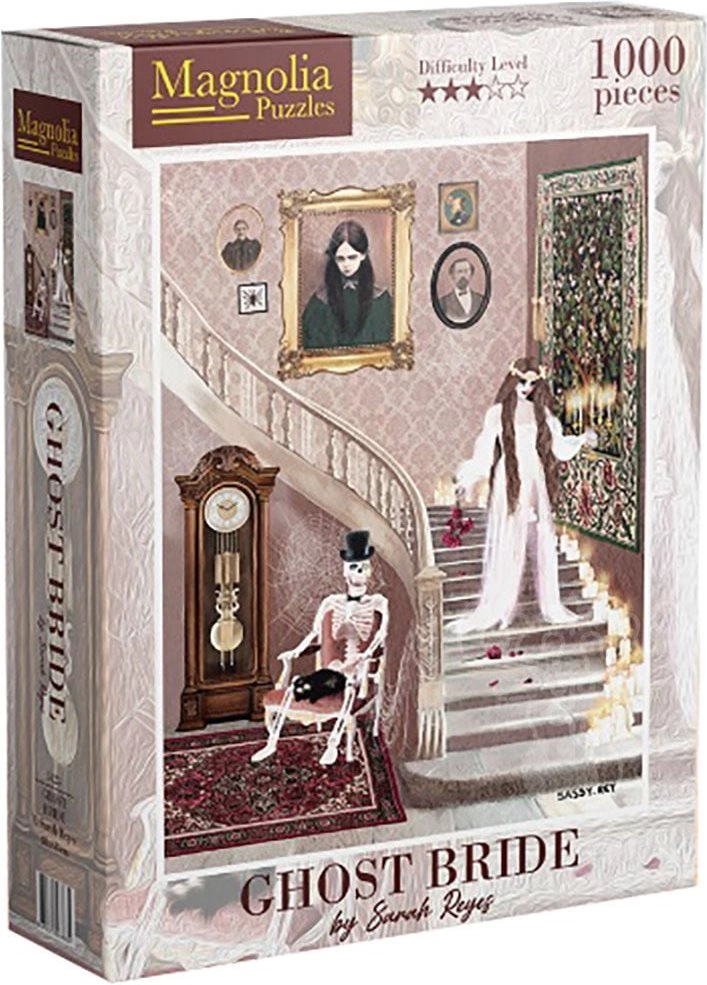 Uživajte u satima zabave uz lijepo izrađenu slagalicu s motivom mladenke iz zagrobnog svijeta. Sklop od 1000 dijelova nudi atraktivan dizajn i kvalitetan tisak, idealno za opuštanje i vježbanje koncentracije. Gotova slagalica ima dimenzije cca 48 × 68 cm.