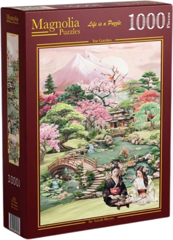 Uživajte u umirujućem slaganju s puzzleom Čajni vrt od 1000 dijelova brenda MAGNOLIA. Idealno za ljubitelje detaljnih ilustracija i opuštanja, dimenzije nakon slaganja cca 48 × 68 cm.