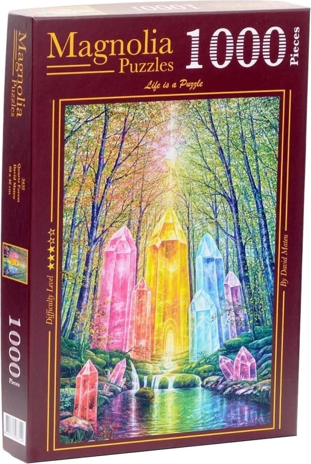 Uronite u prekrasnu ilustraciju tajanstvene kristalne šume i uživajte u satima zabave i odmora. Slagalica s 1000 dijelova nudi idealnu zahtjevnost za odrasle i stariju djecu. Zahvaljujući kvalitetnom tisku i čvrstom kartonu, pojedini dijelovi savršeno pristaju i stvaraju oštru, koloristički vjernu sliku.